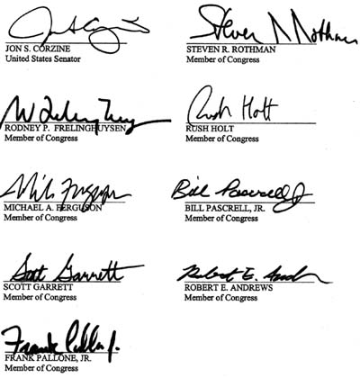 New Jersey Governor James McGreevey, the New Jersey Legislature and a majority of the New Jersey Congressional Delegation also urged the FAA to consider noise control as an essential component of the Project.